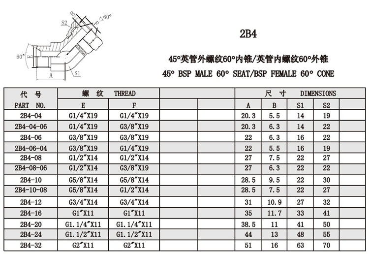 2B4-04,2B4-06,2B4-08,2B4-10,2B4-12,2B4-16,2B4-20,2B4-24,2B4-32,錐面密封接頭
