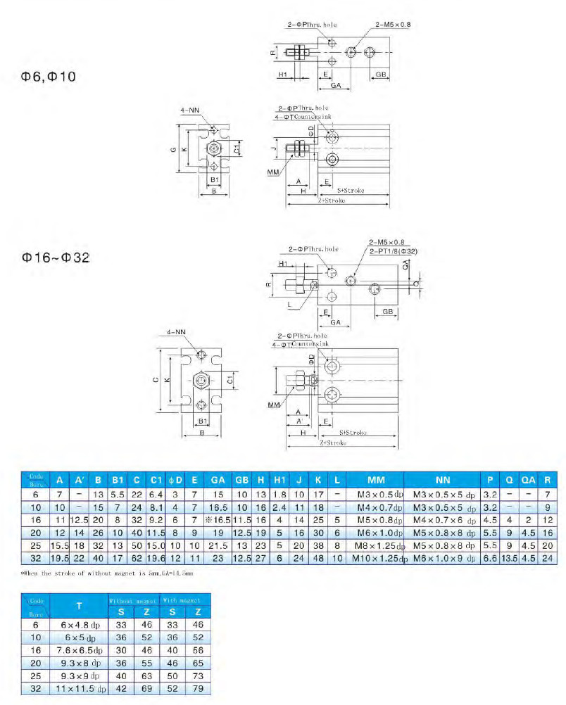 XYFA-11-6,XYFA-11-10,XYFA-11-16,XYFA-11-20,XYFA-21-6,XYFA-21-25,XYFA-21-32,Shinya氣缸