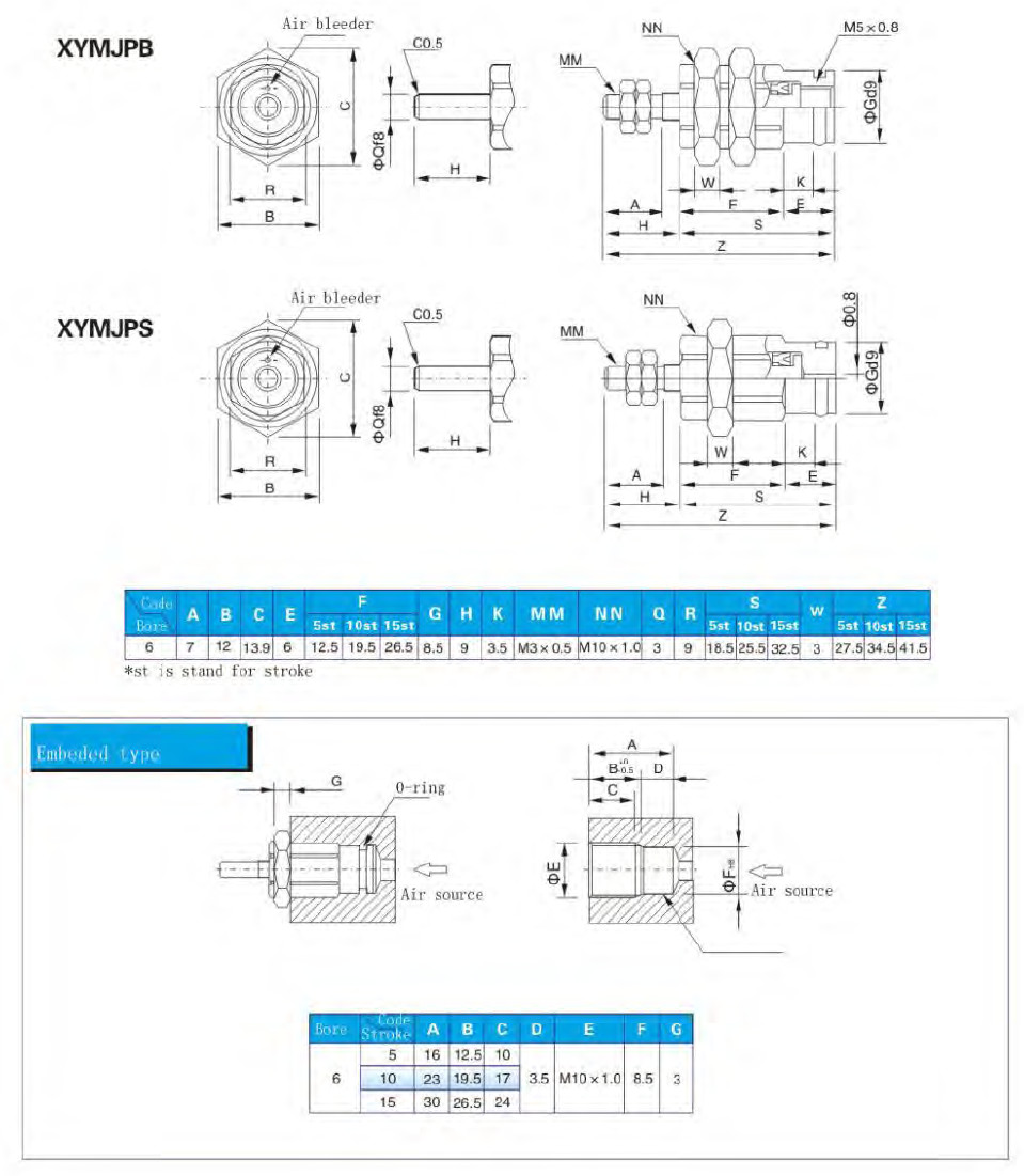 XYMJPB-10-6-5,XYMJPB-15-6-5,XYMJPS-10-6-10,XYMJPS-15-6-15,Shinya筆型氣缸