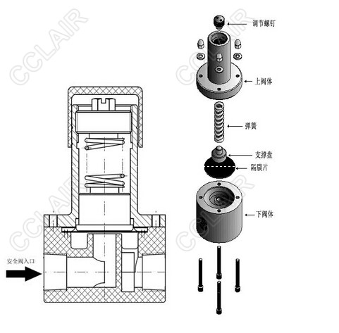 •彈簧膜片式結(jié)構(gòu),壓力可調(diào)(調(diào)壓范圍見參數(shù)表)