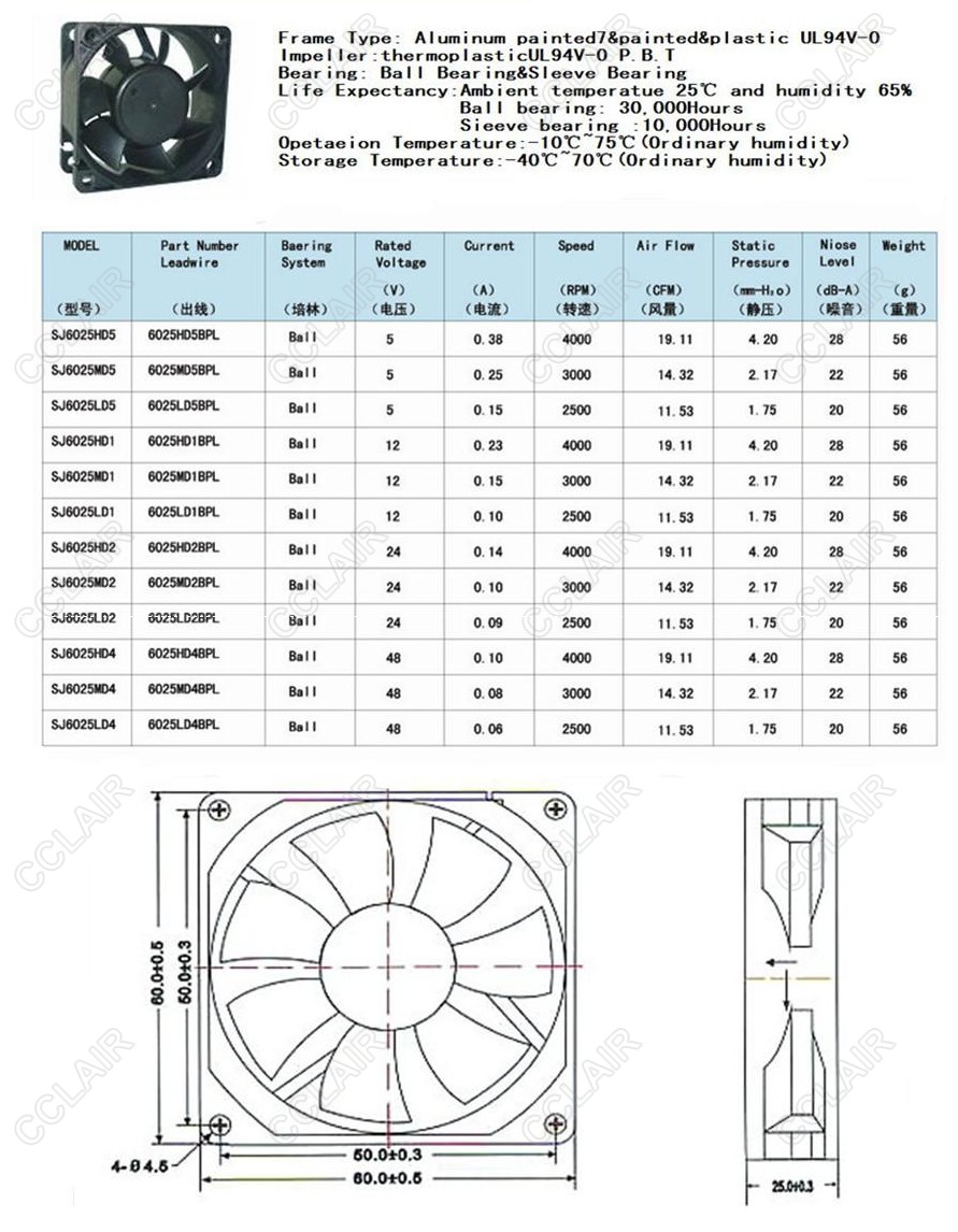 SJ6025HD5,SJ6025MD5,SJ6025LD5,SJ6025HD1,SJ6025MD1,SJ6025LD1,SJ6025,SANJI DC軸流風機 |
