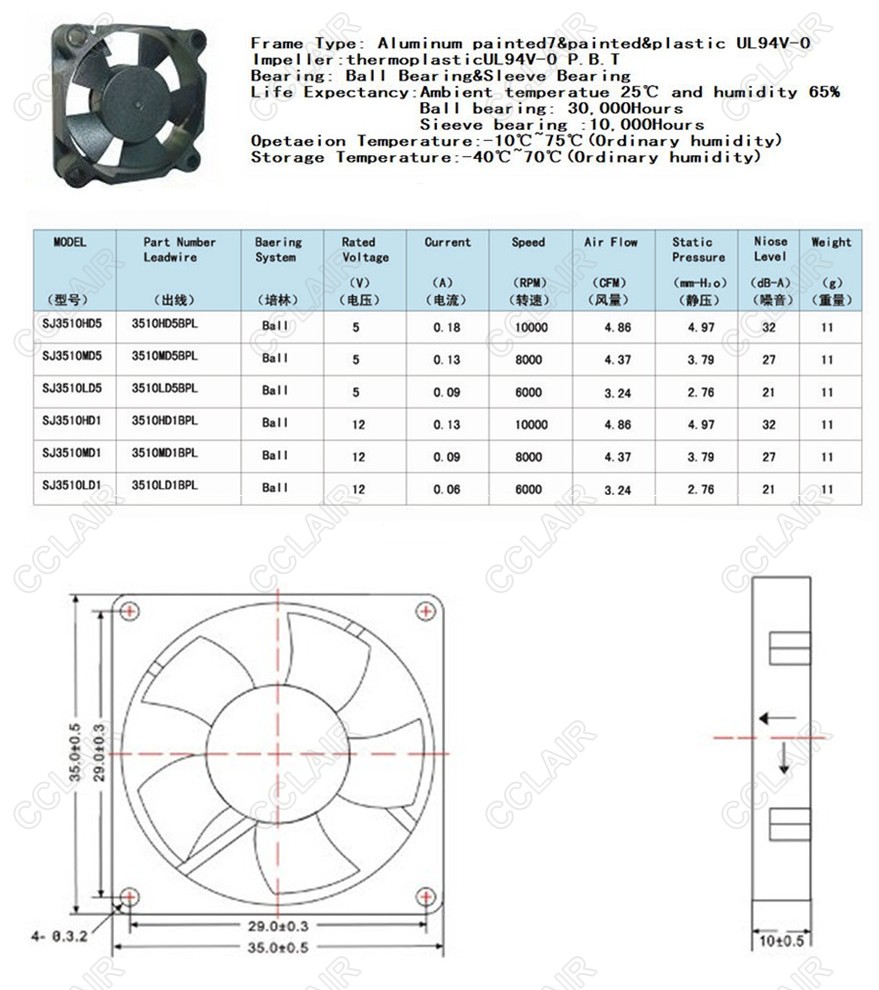 型號: SJ3510HD5,SJ3510MD5,SJ3510LD5,SJ3510HD1,SJ3510MD1,SJ3510LD1,SJ3510,SANJI DC軸流風(fēng)機(jī)