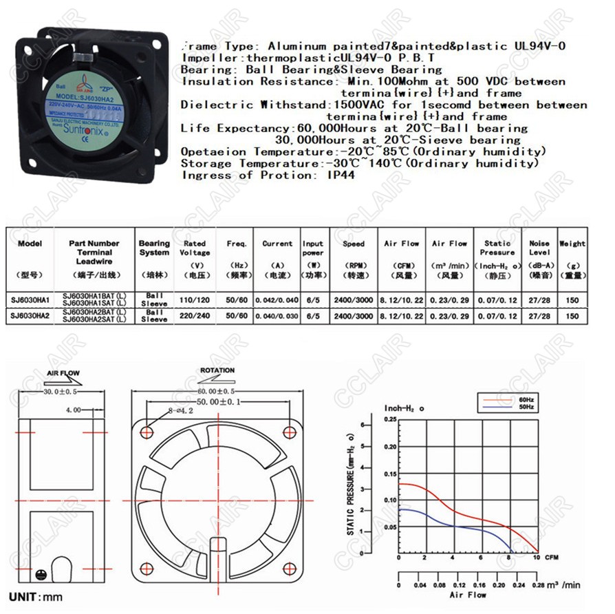 SJ6030HA1,SJ6030HA2,SANJU 軸流風機