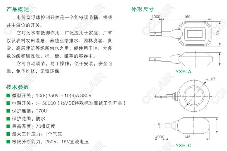 YXF-A,電纜式浮球開關(guān)
