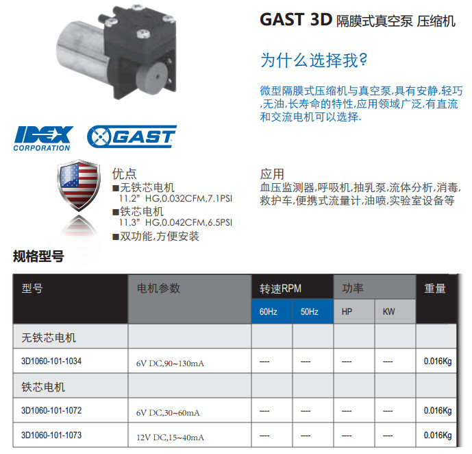 3D1060-101-1034,3D1060-101-1072,3D1060-101-1073,隔膜式真空泵/壓縮機