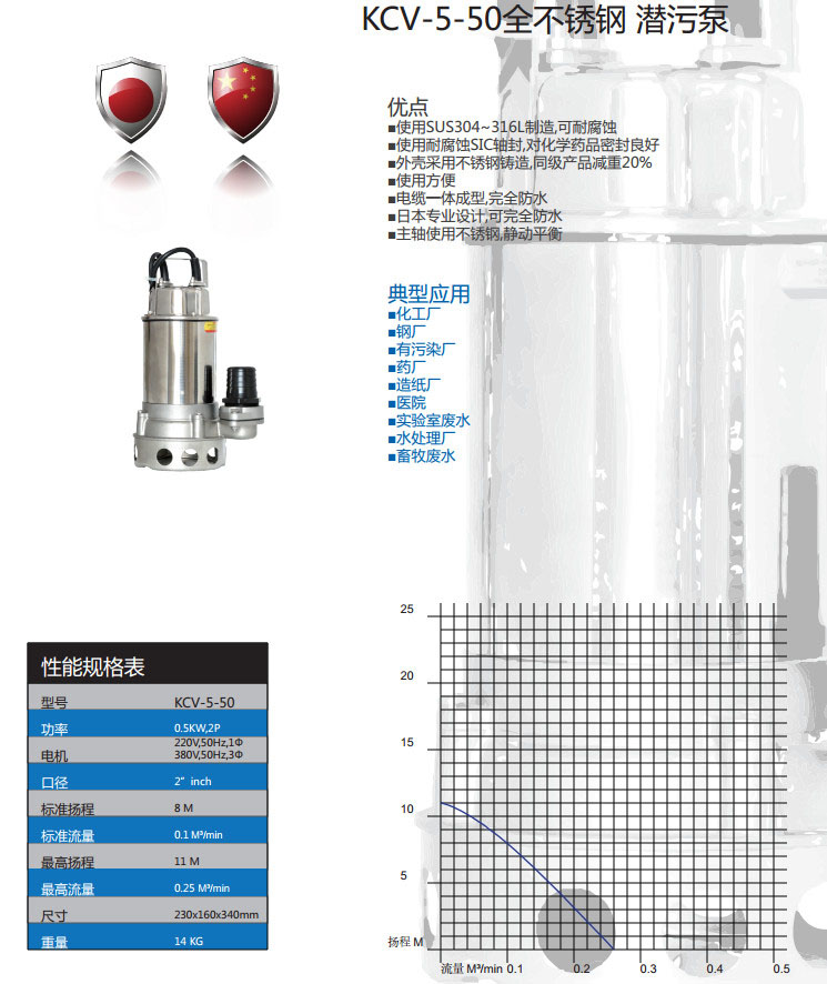 KVC-5-50,全不銹鋼潛污泵