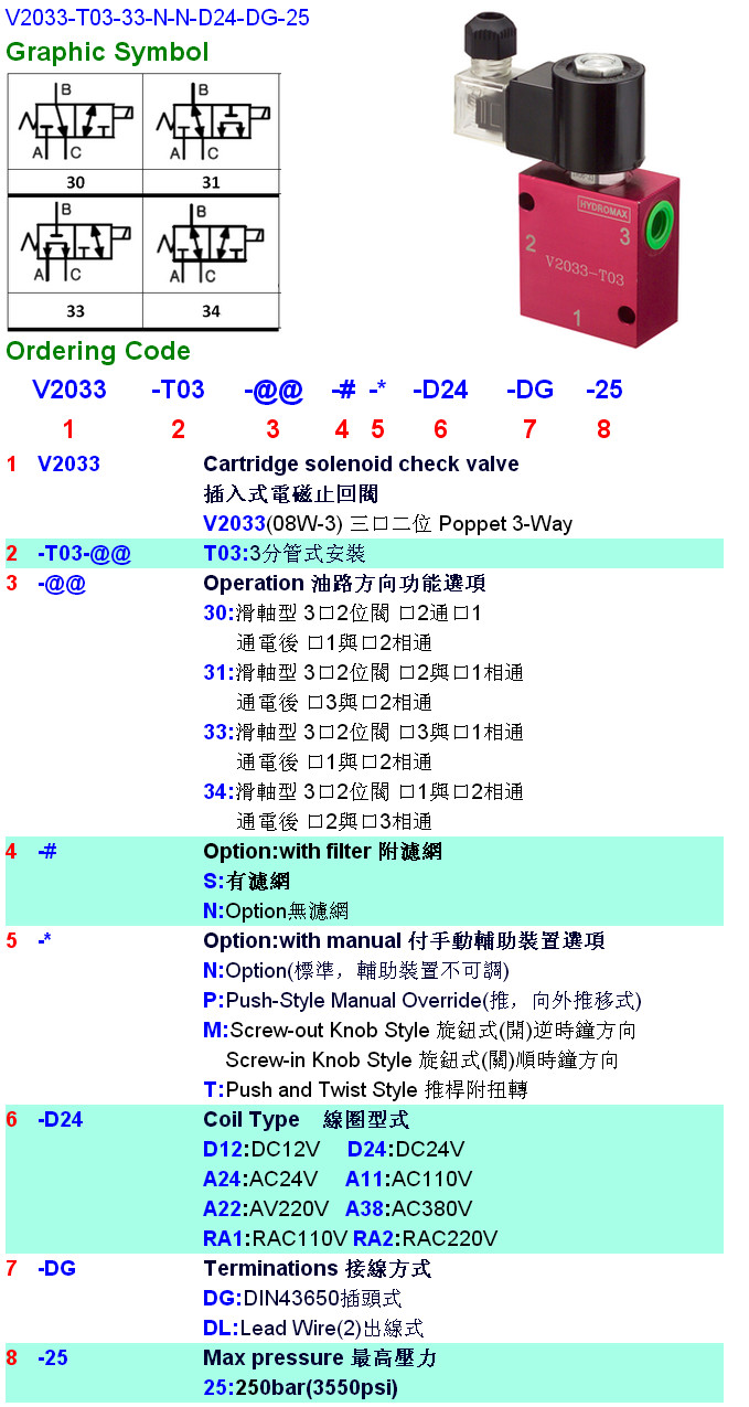 V2033-T03-30,V2033-T03-31,V2033-T03-33,V2033-T03-34,HYDROMAX插入式電磁止回閥 |