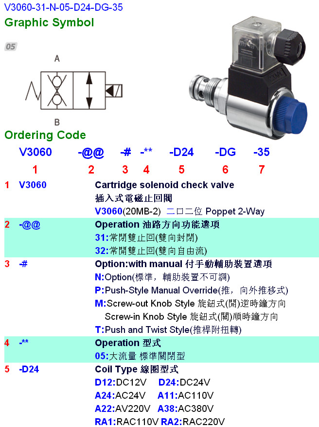 V3060-31-N-05-D24-DG-35,V3060-31-N,V3060-31-P,V3060-31-M,V3060-31-T,HYDROMAX插入式電磁止回閥 |