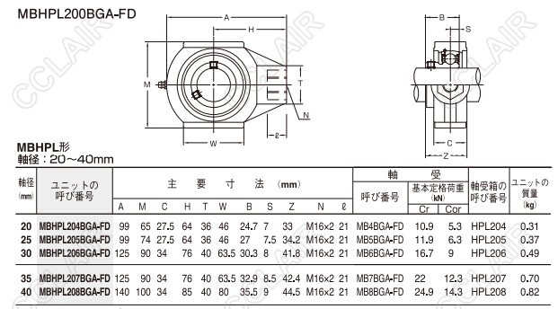MBHPL204BGA-FD,MBHPL205BGA-FD,MBHPL206BGA-FD,MBHPL207BGA-FD,MBHPL200BGA-FD,軸承