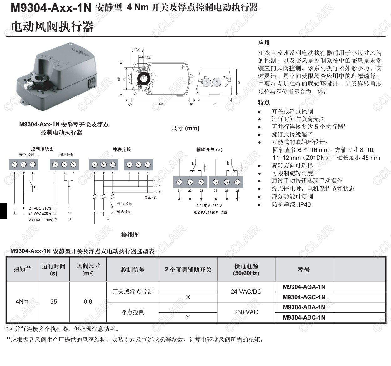 M9304-AGA-1N,M9304-AGC-1N,M9304-ADA-1N,M9304-ADC-1N,M9304-Axx-1N,電動風閥執(zhí)行器 |
