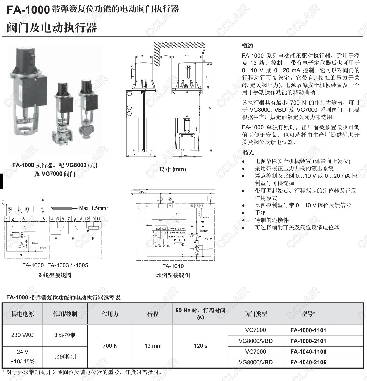 FA-1000-1101,FA-1000-2101,FA-1040-1106,FA-1040-2106,FA-1000,帶彈簧復(fù)位功能的電動(dòng)閥門(mén)執(zhí)行器