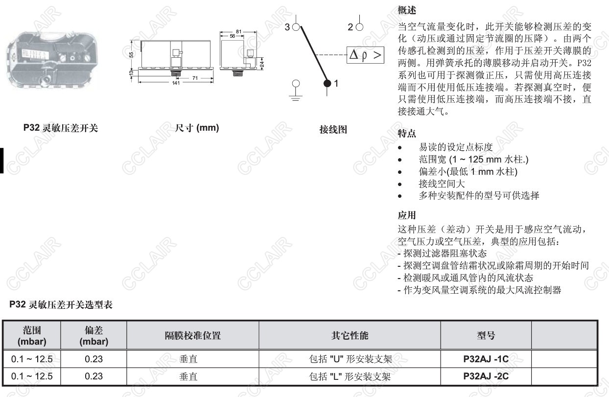 P32AJ-1C,P32AJ-2C,P32,靈敏壓差開關(guān)