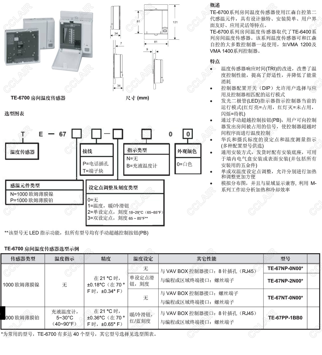 TE-67NP-0N00,TE-67NP-2N00,TE-67NT-0N00,TE-67PP-1BB0,TE-6700,第二代感溫元件房間溫度傳感器