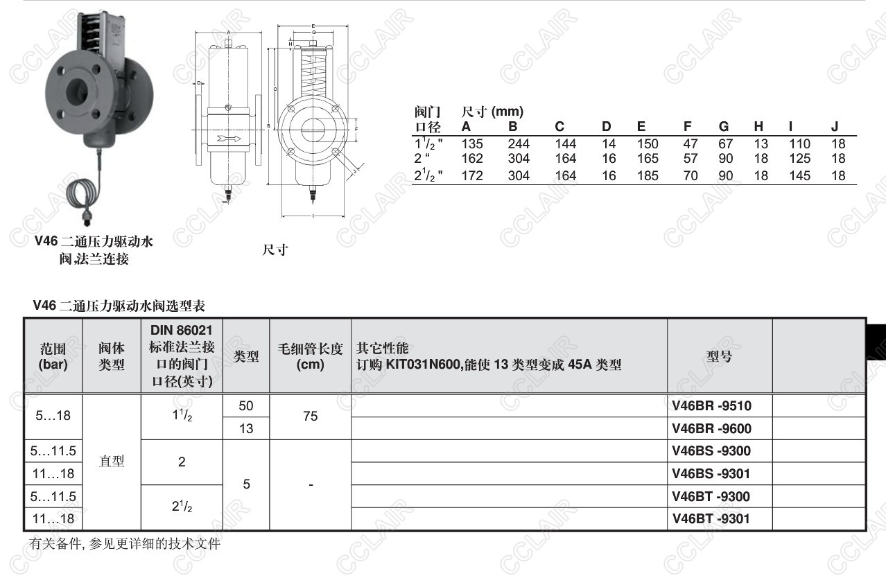 V46BR-9510,V46BR-9600,V46BS-9300,V46BS-9301,V46BT-9300,V46,二通壓力驅(qū)動(dòng)水閥海水用法蘭連接