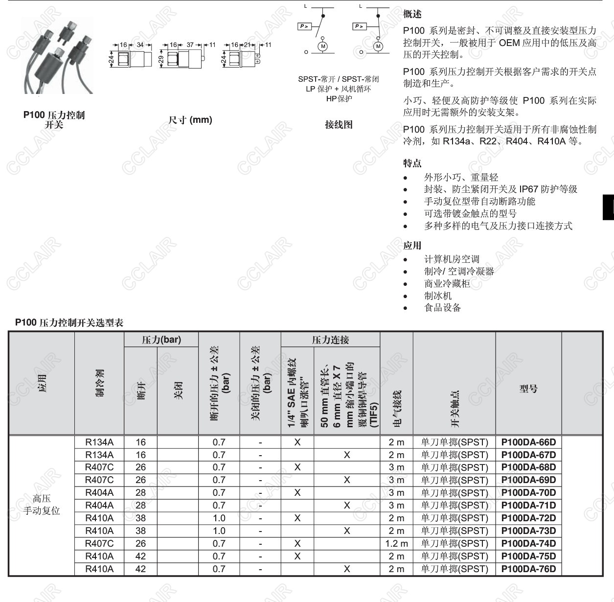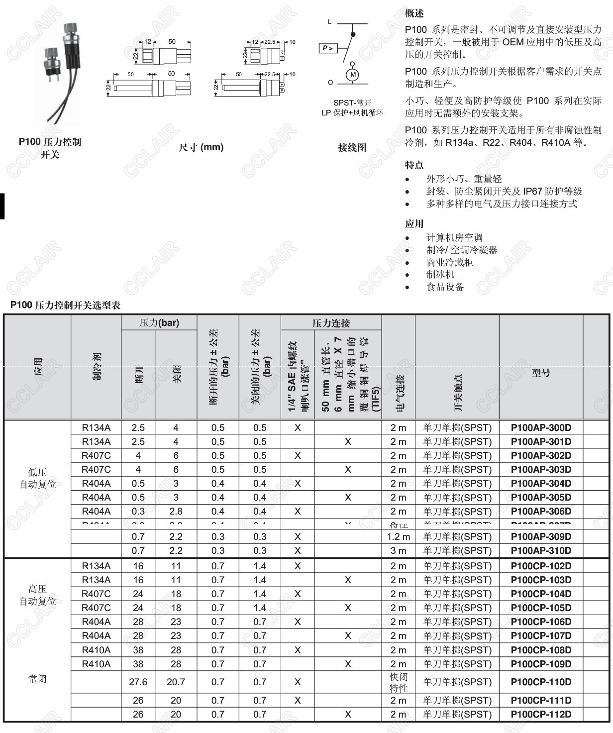 P100AP-300D,P100AP-301D,P100AP-302D,P100AP-303D,P100AP-304D,P100,直接安裝壓力控制開關(guān) |