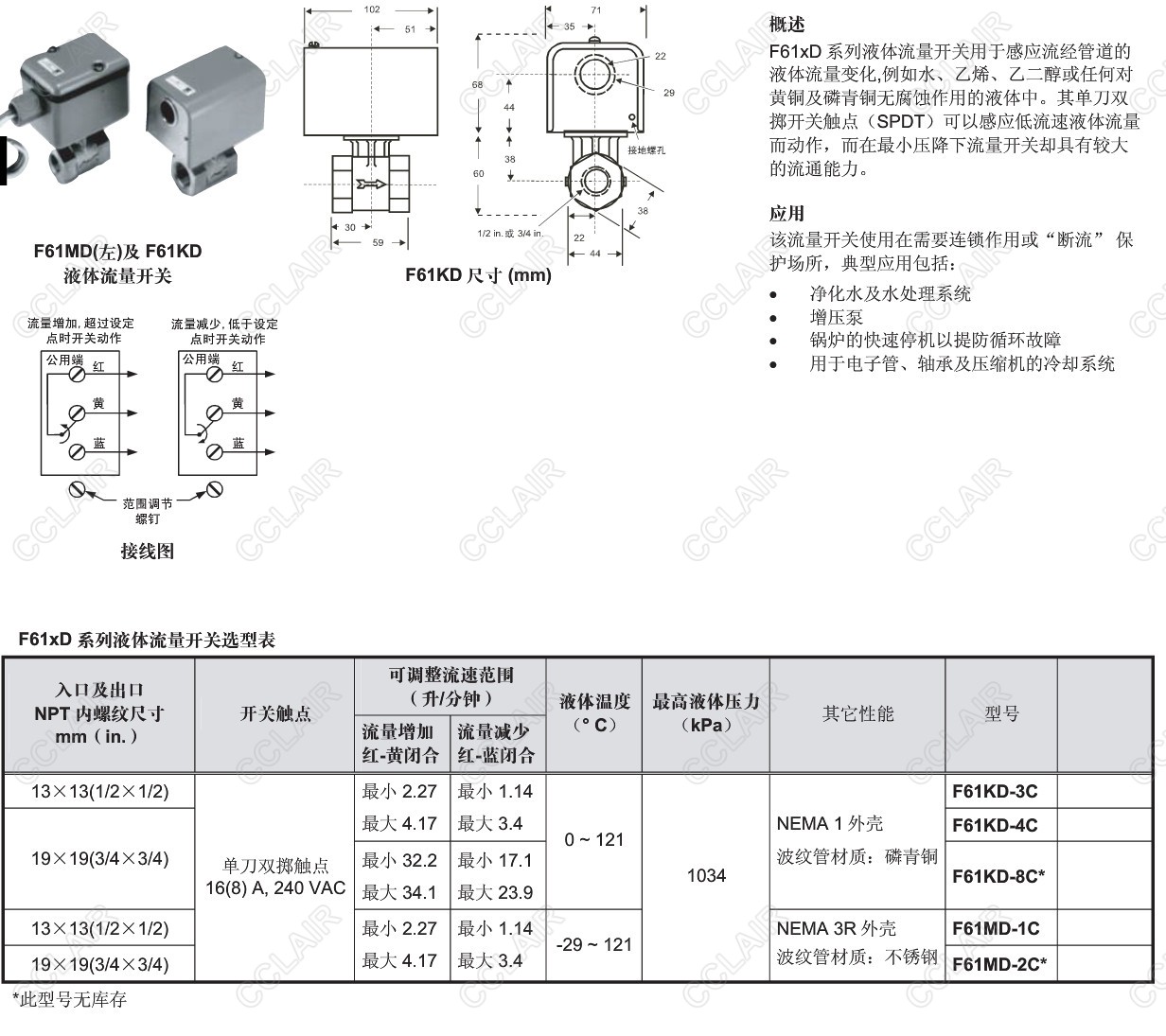 F61KD-3C,F61KD-4C,F61KD-8C,F61MD-1C,F61MD-2C,F61xD,液體流量開關(guān) |