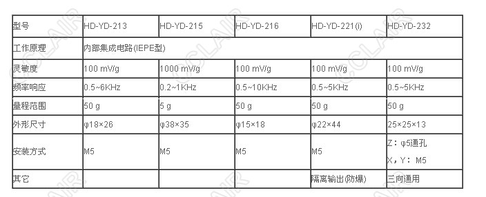 HD-YD-213,HD-YD-215,HD-YD-216,HD-YD-221(i),HD-YD-232,壓電式加速度傳感器 |