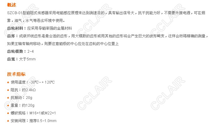 SZCB-01,磁阻式轉(zhuǎn)速傳感器