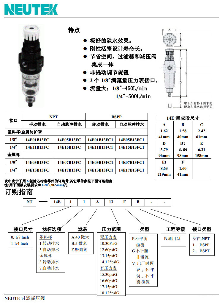 NT-14E07B17GB,NT-14E07B18GB,NT-14E17B17GB,NT-14E17B18GB,NEUTEK過濾減壓閥 |