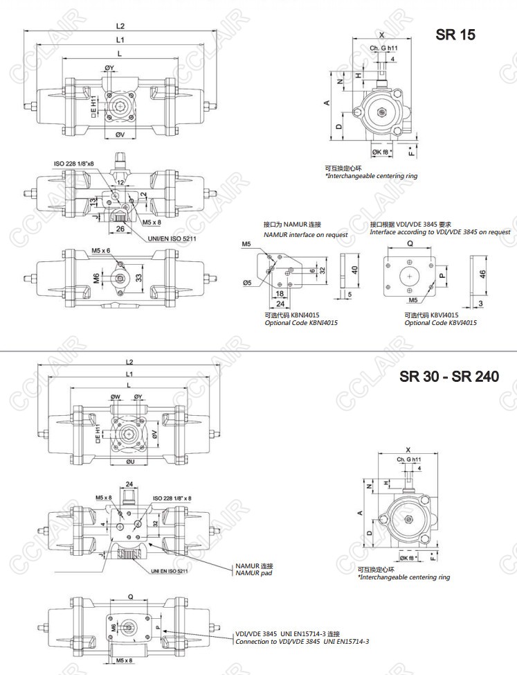 從SR30起可直接與NAMUR標(biāo)準(zhǔn)的電磁閥連接。