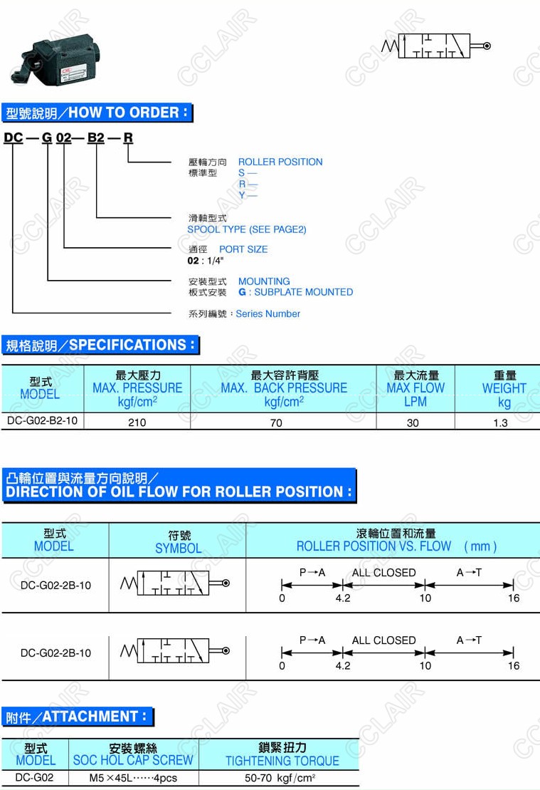 DC-G02-B2-S,DC-G02-B2-R,DC-G02-B2-Y,凸輪式換向閥CML