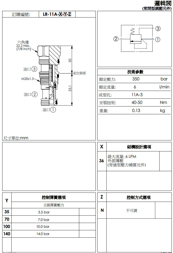 LR-11A-36-35-N,LR-11A-36-70-N,LR-11A-36-100-N,LR-11A-36-140-N,winner邏輯閥