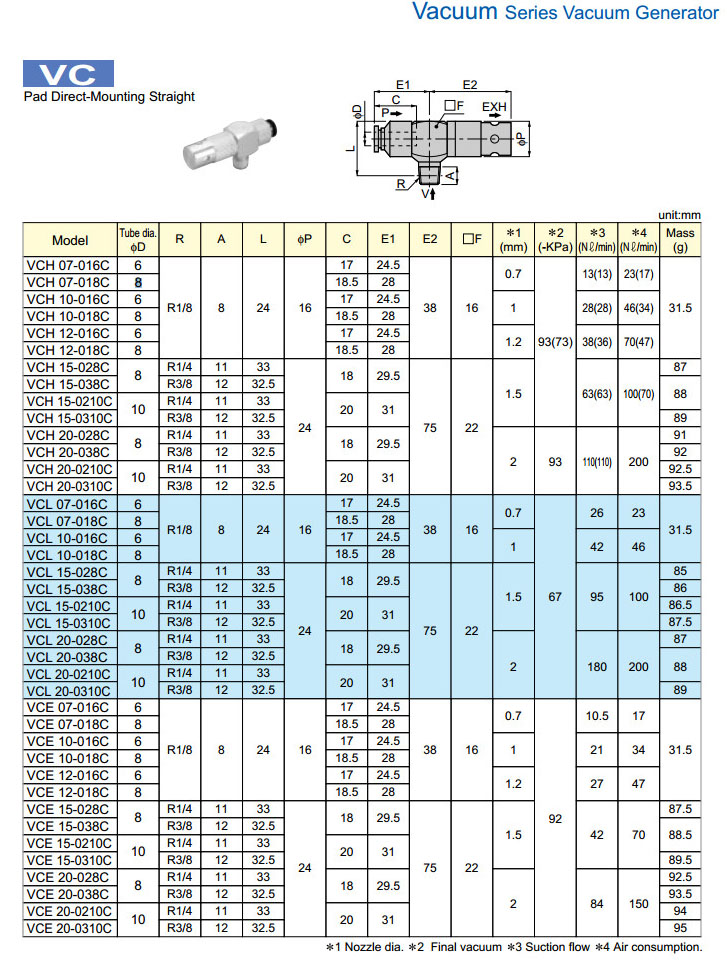 VCH07-016C,VCH10-016C,VCH12-016C,VCL07-016C,VCL15-038C,VCE07-018C,VCE20-0310C