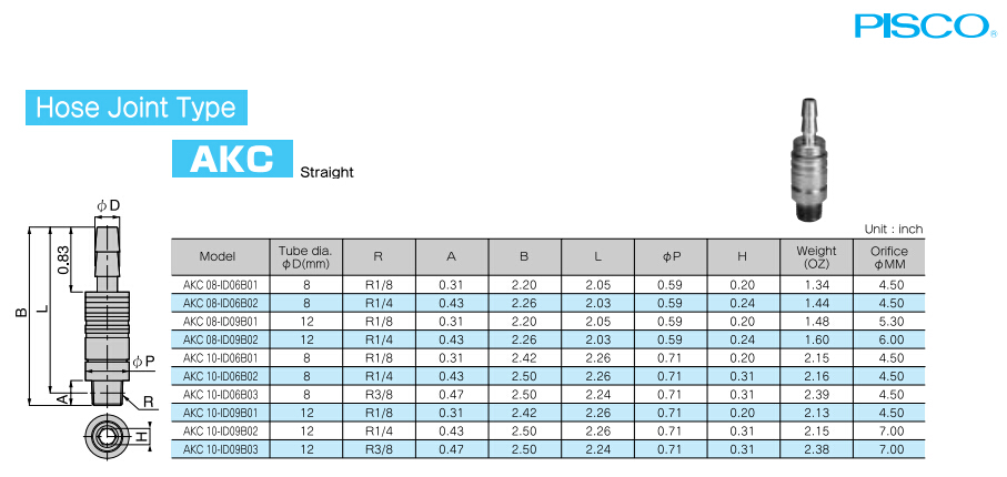 AKC08-ID06B01,AKC08-ID09B01,AKC10-ID06B01,AKC10-ID09B01,AKC08-ID06B02,AKC10-ID09B03,PISCO耐熱管接頭