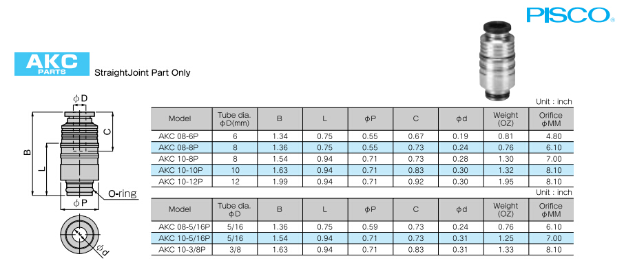 AKC08-6P,AKC08-8P,AKC10-8P,AKC10-10P,AKC10-12P,AKC08-5/16P,AKC10-5/16P,AKC10-3/8P