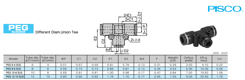 PEG6-4SUS,PEG8-6SUS,PEG10-8SUS,PEG12-10SUS,PISCO快速接頭