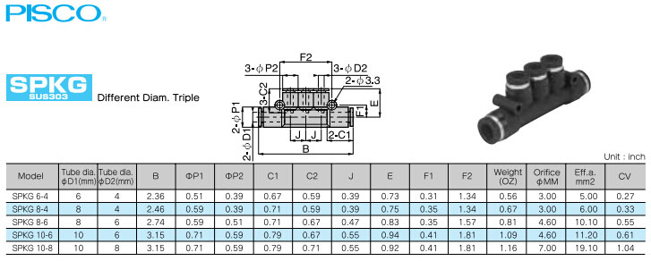 SPKG6-4,SPKG8-4,SPKG8-6,SPKG10-6,SPKG10-8,PISCO快速接頭