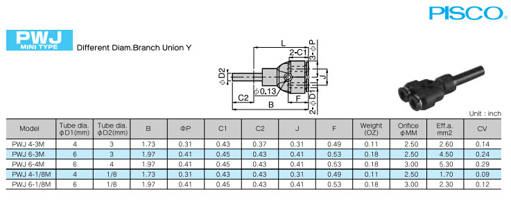 PWJ4-3M,PWJ6-3M,PWJ6-4M,PWJ4-1/8M,PWJ6-1/8M,PISCO快速接頭