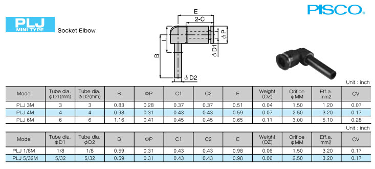 PLJ3M,PLJ4M,PLJ6M,PLJ1/8M,PLJ5/32M