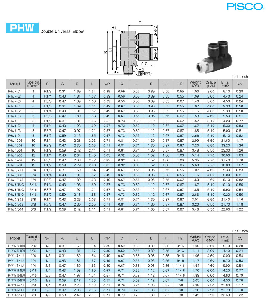 型號: PHW4-01,PHW6-01,PHW8-01,PHW10-02,PHW12-02,PHW1/4-01,PHW5/16-02,PHW3/8-02