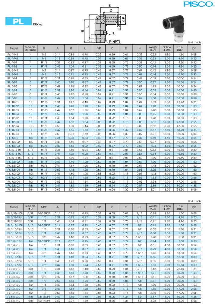 PL5/32-U10U,PL3/16-U10U,PL1/4-U10U,PL5/16-N1U,PL3/8-N1U,PL1/2-N2U,PL5/8-N3U,PISCO快速接頭