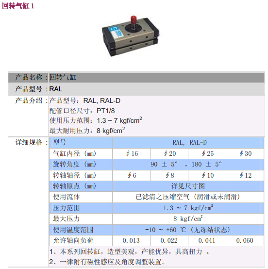 RAL-16,RAL-20,RAL-25,RAL-30,RAL-D-16,RAL-D-20,RAL-D-25,RAL-D-30,POSU回轉(zhuǎn)氣缸 |