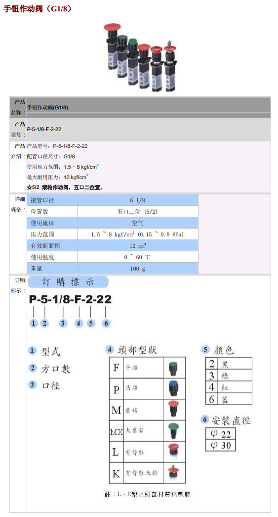 P-5-1/8-F-2-22,POSU手鈕作動閥