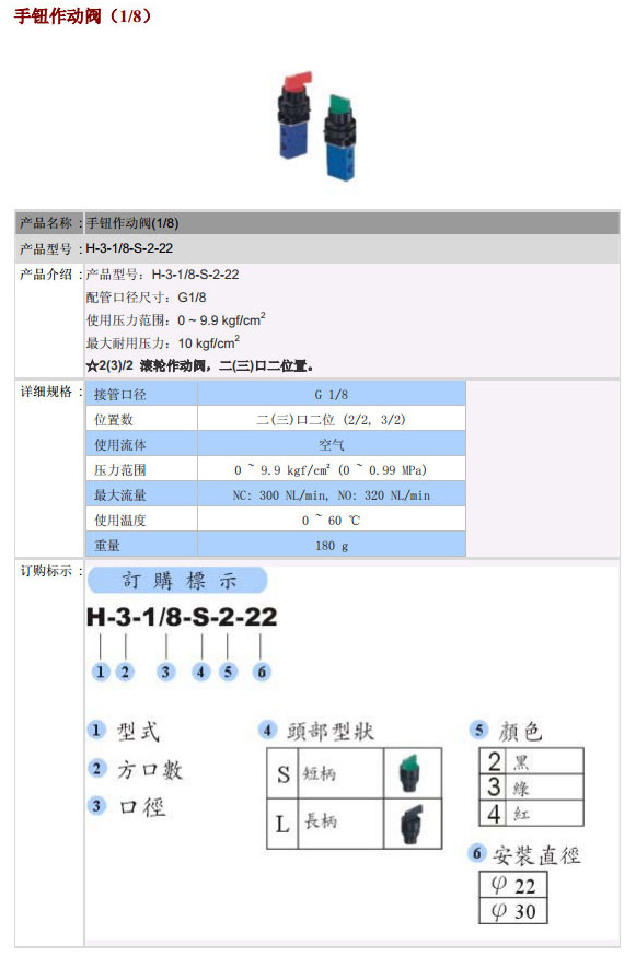 H-3-1/8-S-2-22,POSU手鈕作動(dòng)閥