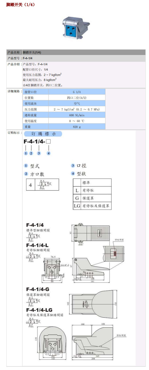 F-4-1/4,F-4-1/4-L,F-4-1/4-G,F-4-1/4-LG,PST腳踏開關(guān)