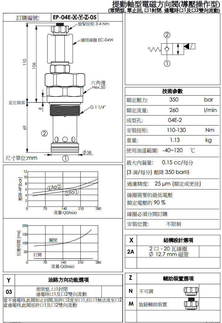 EP-04E-2A-03-N-05,EP-04E-2A-03-M-05,winner提動軸型電磁方向閥