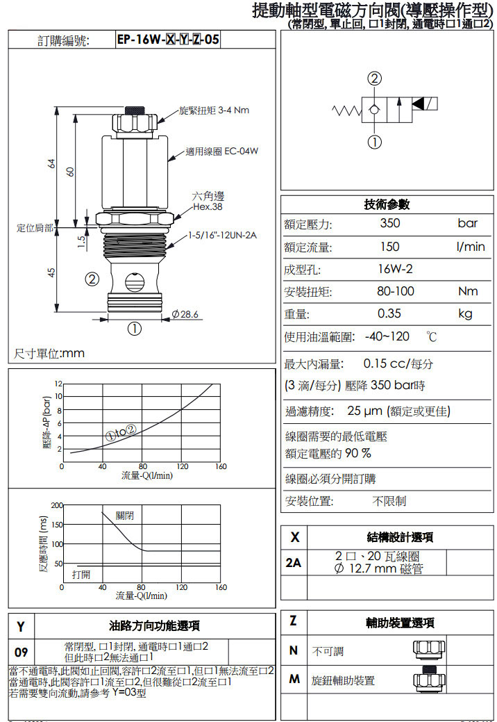 EP-16W-2A-09-N-05,EP-16W-2A-09-M-05,winner提動軸型電磁方向閥