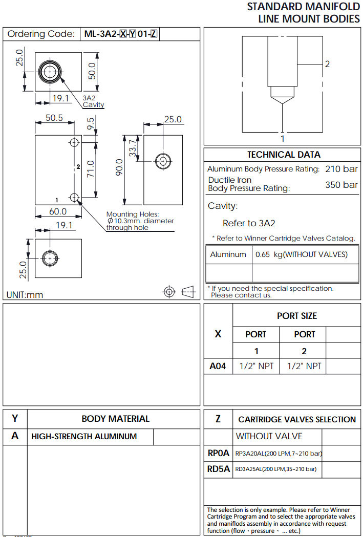 ML-3A2-A04-A01-RP0A,ML-3A2-A04-A01-RD5A,winner標(biāo)準(zhǔn)配管式油路板