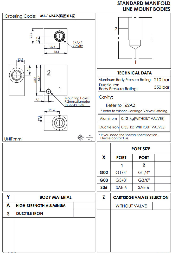 ML-162A2-G02-A01,ML-162A2-G03-A01,ML-162A2-S06-A01,winner標準配管式油路板 |