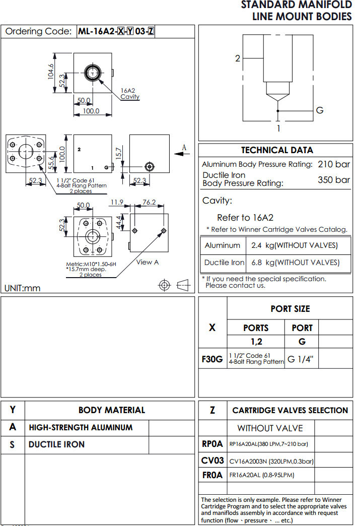 ML-16A2-F30G-A03-RP0A,ML-16A2-F30G-A03-CV03,ML-16A2-F30G-A03-FR0A,winner標(biāo)準(zhǔn)配管式油路板 |