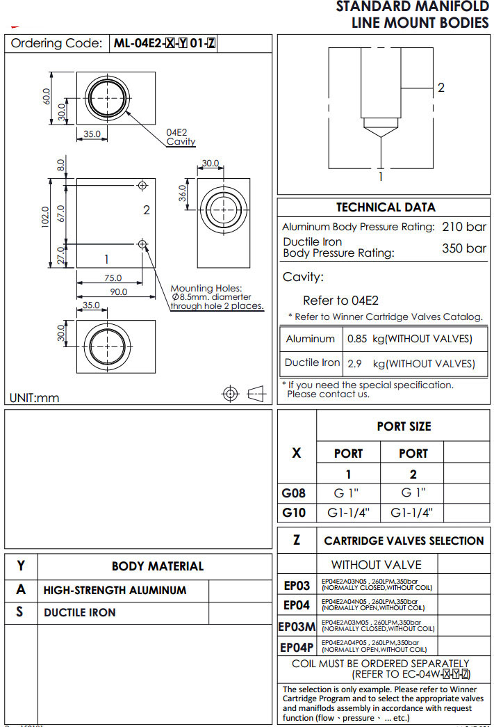 ML-04E2-G08-A01-EP03,ML-04E2-G10-A01-EP03,ML-04E2-G08-S01-EP03,ML-04E2-G10-S01-EP03,winner標準配管式油路板 |