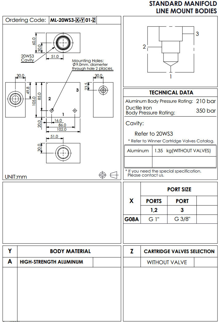 ML-20WS3-G08A-A01,winner標準配管式油路板