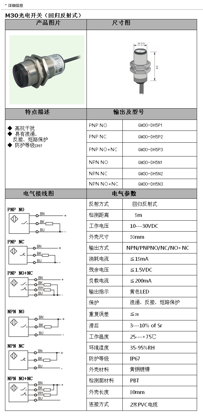 GM30-DH5P1,GM30-DH5P2,GM30-DH5P3,GM30-DH5N1,GM30-DH5N2,GM30-DH5N3,M30光電(回歸反射)