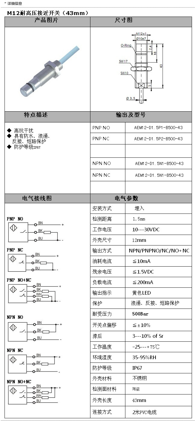 AEM12-D1.5P1-B500-43,AEM12-D1.5P2-B500-43,AEM12-D1.5N1-B500-43,M12引線式(43mm)