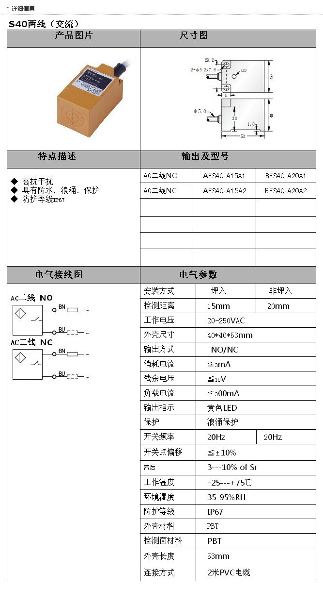 AES40-A15A1,BES40-A20A1,AES40-A15A2,BES40-A20A2,S40交流兩線