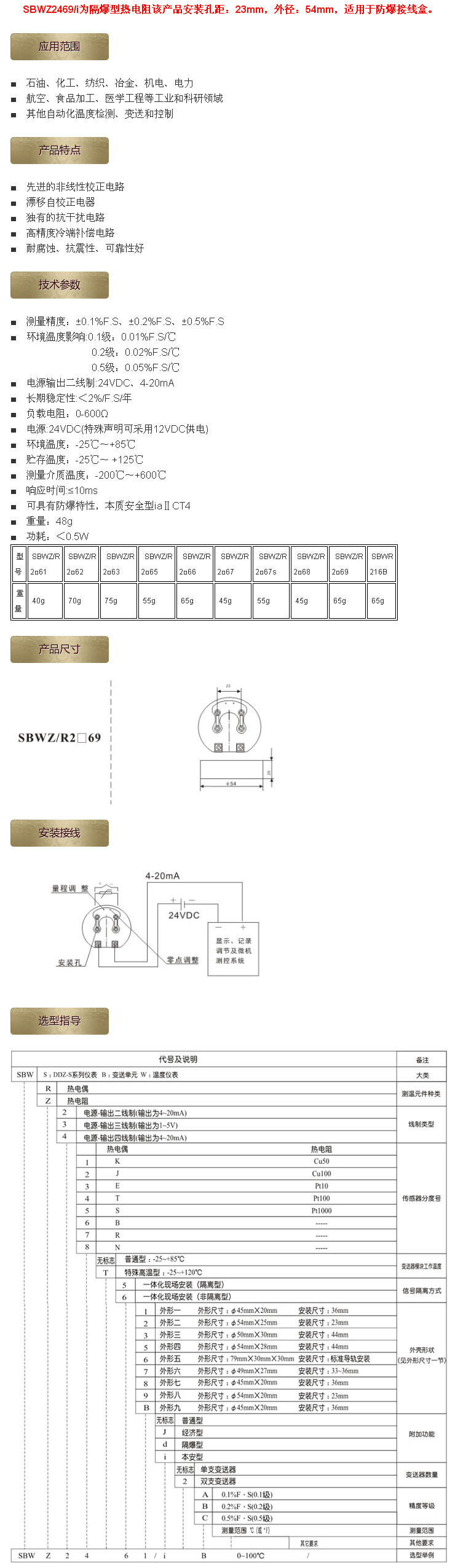 SBWZ2169,SBWZ2269,SBWR2669,SBWR2769,SBWR2869,SBWZ2469/i,隔爆型熱電阻